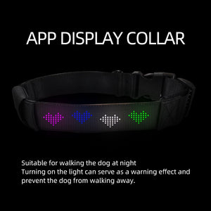 “This collar makes me so happy, and I swear my dog knows when he has it on. The bounce in his step is just a little higher. Many neighbors and random walkers/runners stop to look at it, and my dog just soaks up every bit of all of the attention! The lights are bright, the text legible, the app easy to use. I don’t know if I would trust the strength of the collar to be the only leash point for my huge lab, so I just use his regular collar for that and simply clip this around his neck. It’s fun to change up the text, but it also serves the purpose of lighting up my dog on our 5:00am runs.”